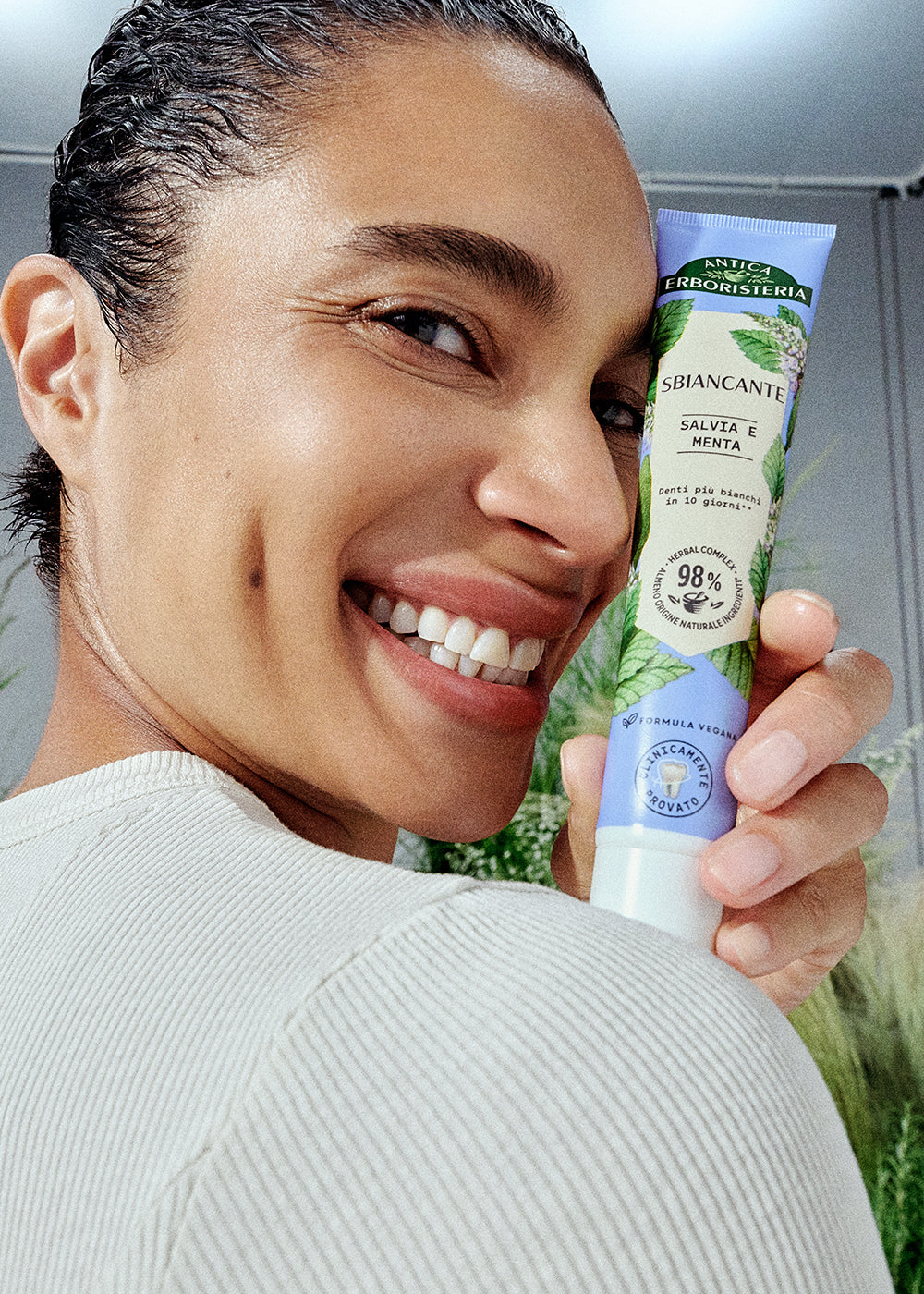 Our ingredients are inspired by Italian herbs. Sage, lavender, clove, peppermint, and green tea naturally protect your smile and provide an exceptional taste experience.